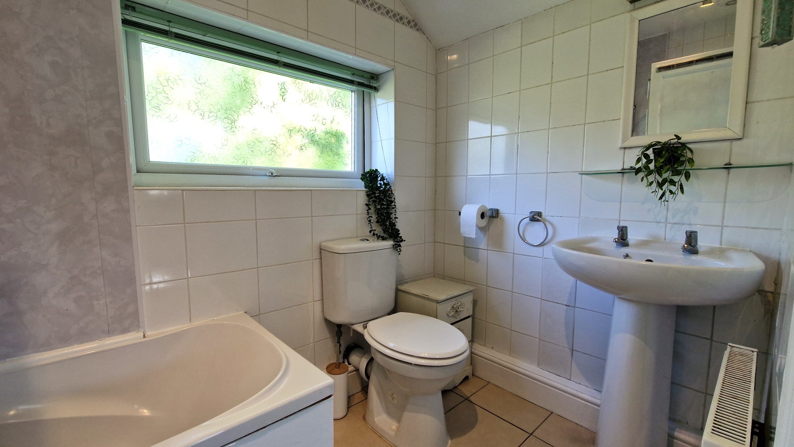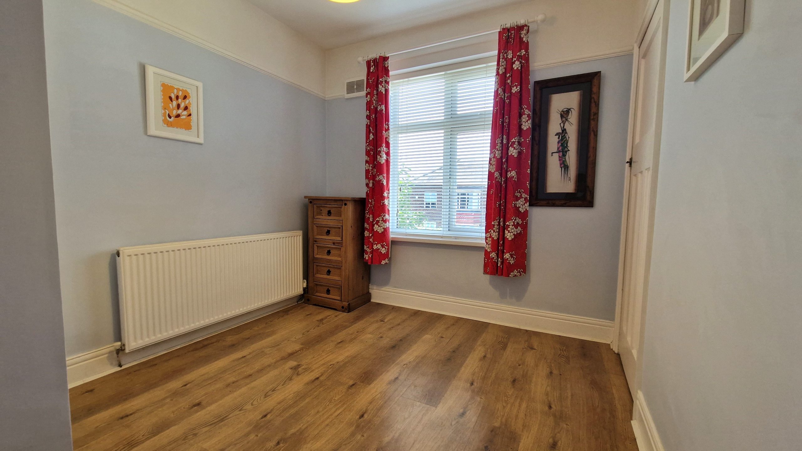 The third room could be used as an office for professionals working from home, or converted into a third bedroom if necessary. The bathroom includes a shower over bath.