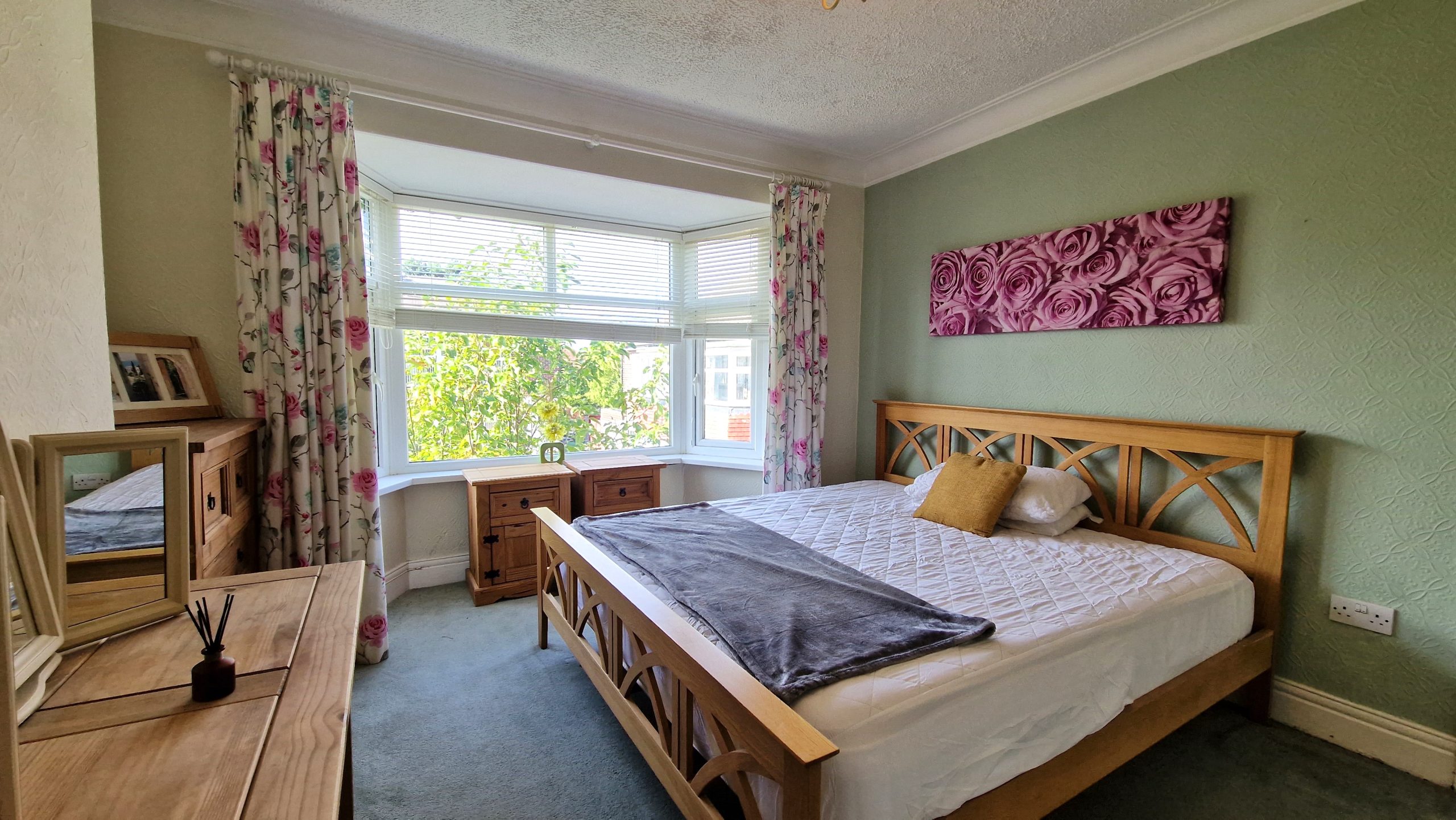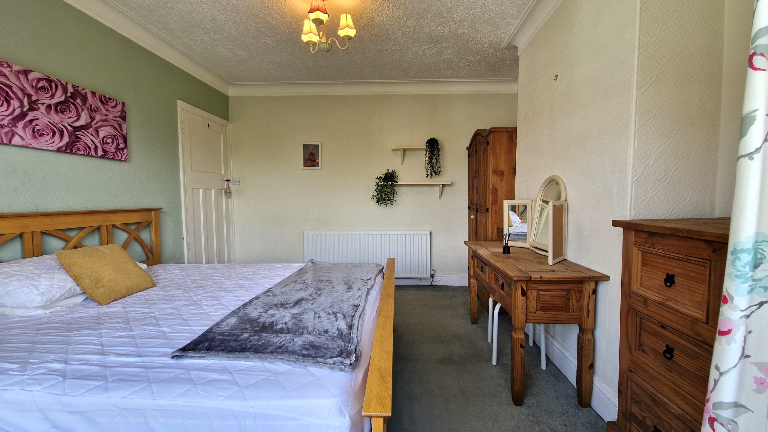 The two main bedrooms are spacious and charming - furnished with bed base and mattress plus characterful oak wardrobes, drawers, and bedside tables. The main bedroom also boasts a dressing table with mirror units.